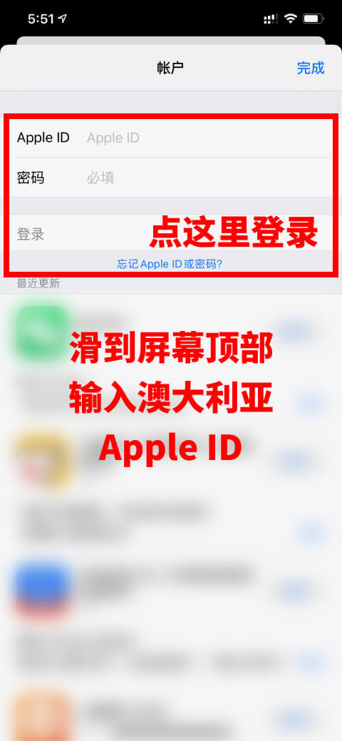 滑到屏幕顶部,用新建的澳大利亚 Apple ID 登录